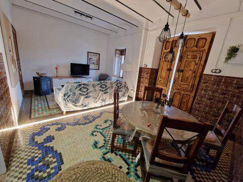 Hundraårigt hus som totalrenoverats med högkvalitativa material, med bevarade originaldetaljer som 100 år gamla kakelplattor från Manises på väggar och golv samt restaurerade ädelträdetaljer.